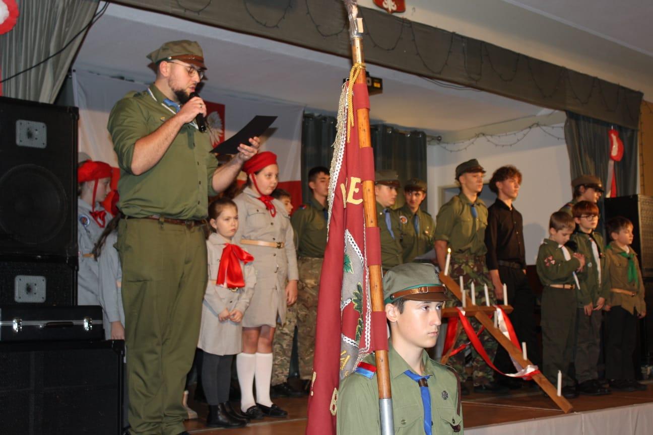 Program uroczystości wzbogaciły występy dzieci, które w ciekawy sposób przedstawiły symbole narodowe oraz opowiedziały o ważnych momentach w historii Polski. Z kolei tancerze zaprezentowali tradycyjne tańce ludowe, pełne energii i kolorów, które ukazały bogactwo polskiej kultury. Harcerze, z pełnym oddaniem, wzięli udział w ceremonii, a ich występ dodał uroczystości głębokiego wymiaru patriotycznego.